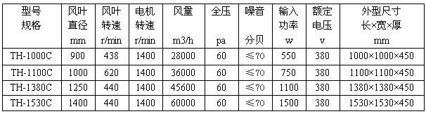 TH-C型推拉式負(fù)壓風(fēng)機(jī)技術(shù)參數(shù):