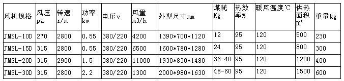 水暖溫室禽舍加溫機主機技術(shù)數(shù)據(jù):