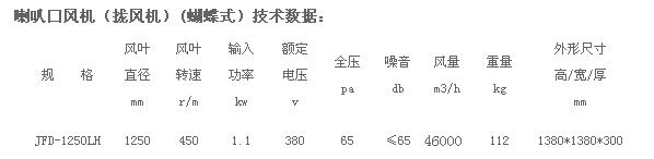 喇叭口風(fēng)機(攏風(fēng)機)(蝴蝶式)技術(shù)數(shù)據(jù):